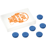 Magnet set includes 6 magnets packed in a drawer with a sliding PVC tray.