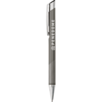 The Glenn Metal Pen has a retractable ballpoint with anodized aluminum barrel and shiny chrome accents. Black ink cartridge.
