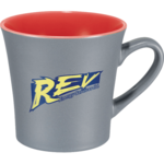Ceramic mug with smooth matte gray outer wall and brightly colored high-gloss inner wall. Choose between color imprinting or our cutting edge dishwasher safe laser decorating method. Exclusive Leed's design. 12oz.
