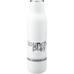 The Marka Copper Vacuum Insulated Bottle features durable, double-wall stainless steel vacuum construction with copper insulation, which allows your beverage to stay cold for 48 hours and hot for at least 12 hours. The construction also prevents condensation on the outside of the bottle. Comes complete with the on-trend, durable, smooth-touching powder coated appearance and a screw-on, spill resistant lid and a durable, zinc-alloy hand loop. Fits most standard car cup holders. Leed's exclusive. 20oz. Gray Pinstripe Pattern
