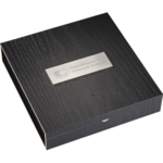 Set includes four square coasters with fine detailed stitching around the edges and velvet flocked bottom and a stainless steel waiter corkscrew presented in a contemporary, retail-inspired wooden storage box.